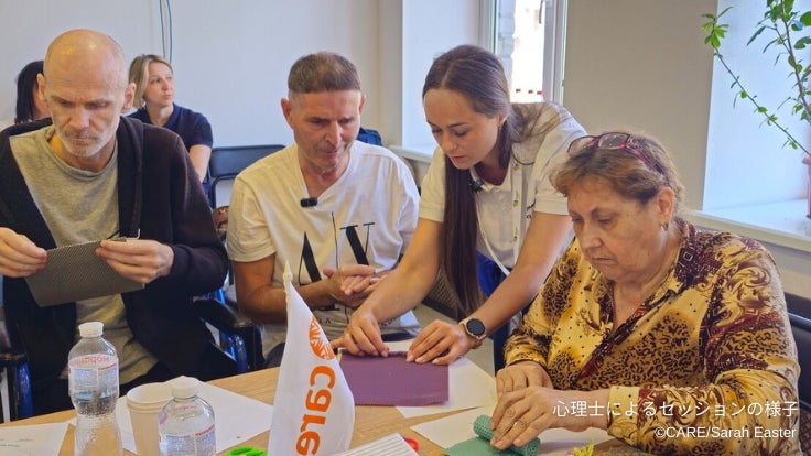 CAREは、戦争の影響によるストレス、不安、そしてトラウマを癒すための心のケア(心理社会的サポート)を行っている。これは感情を整理し、自分を取り戻し、「未来への一歩を踏み出す」ための大切な支援となる。