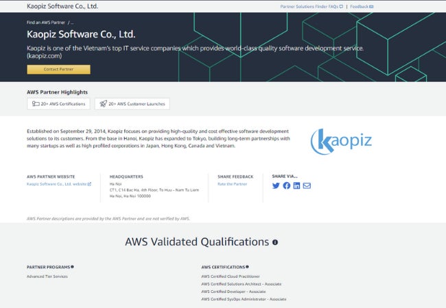 カオピーズが2年連続で認定された「AWSアドバンストコンサルティングパートナー」は上から2番目の上級認定です。取得にはAWS関連の技術、営業体制、コンサルティング、システム開発などの実績だけでなく、顧客満足度も求められます。