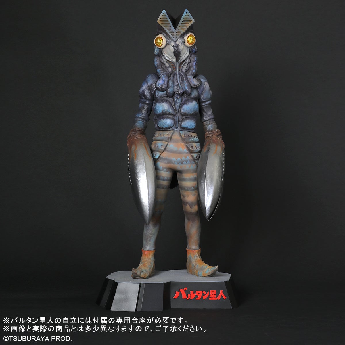 精密な造形は勿論の事、今回の商品化にあたり、「バルタン星人」のロゴが記された専用の台座を新規造形。よりコレクション性の高い仕様となっております。