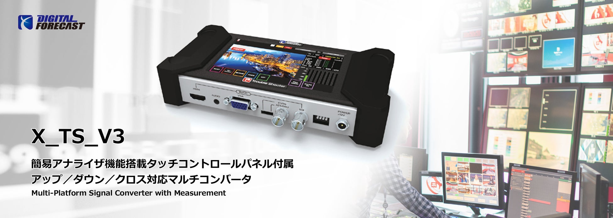 株式会社エーディテクノ(東京都新宿区)は、Digital Forecast Co., Ltd.(デジタルフォーキャスト社)製「Bridge Xシリーズ」より、簡易アナライザ機能搭載タッチコントロールパネル付属アップ/ダウン/クロス対応マルチコンバータ [型番:X_TS_V3]を 2022年2月25日(金)に発売いたします。