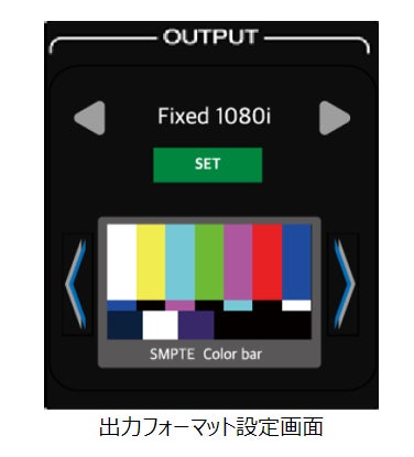 操作用5型タッチパネル液晶には、入力映像プレビューや入力信号情報を表示。タッチパネルまたは本体上部のジョグダイヤルでの直感的な操作で、各種設定や出力フォーマットの選択が行えます。