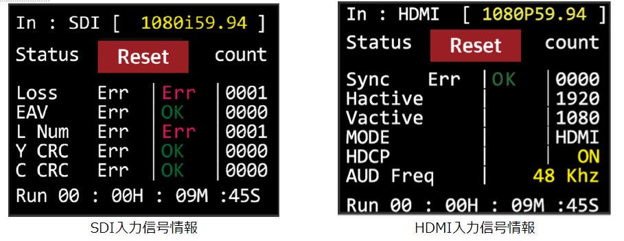 SDI/HDMI入力情報モニタリング