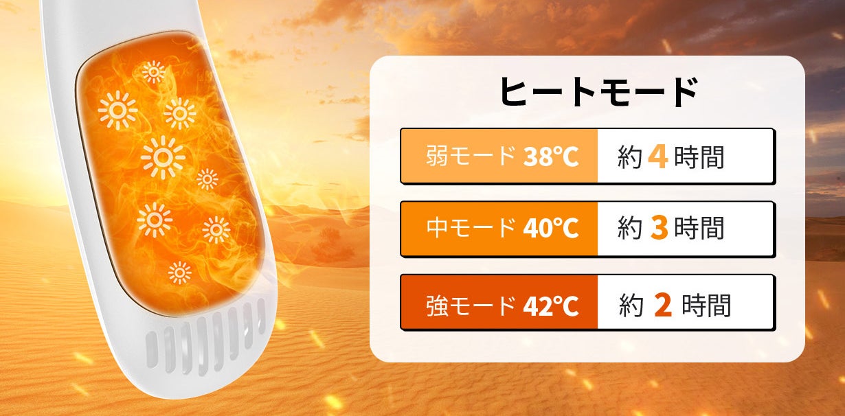 またはクーラーモードとヒートモードはそれぞれ3段階の温度調節が可能で、暑い季節のみならず、寒い季節にもお使いいただけます。