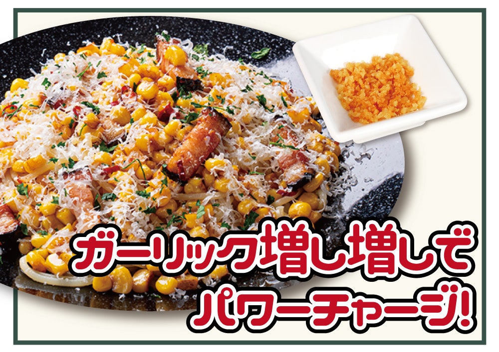 『北海道美瑛産”甘~い”とうもろこしと「農家のベーコン」のガーリック醤油』に「ガーリックチップス」と「大葉」をプラス!増し増しガーリックでパワーチャージ!