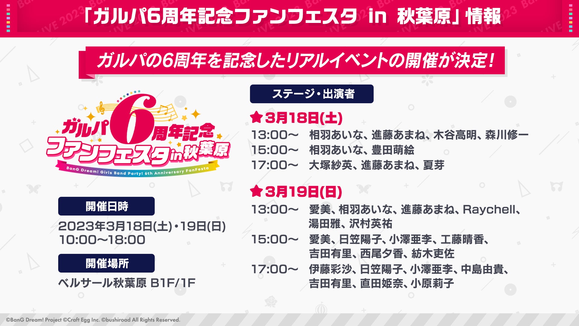 「ガルパ6周年記念ファンフェスタ in 秋葉原」の詳細: