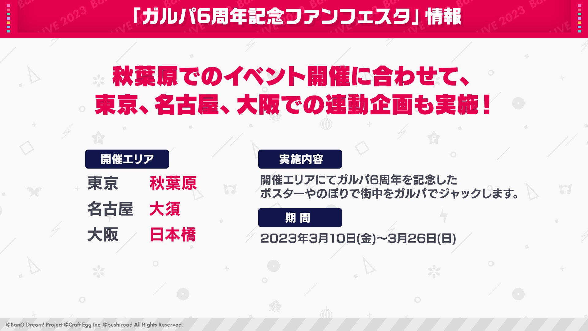 ■東名阪での連動企画として「ガルパ6周年記念ファンフェスタ」の実施が決定!