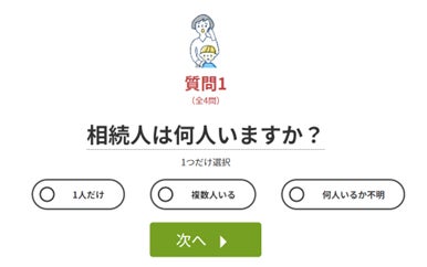 「どんな手続きが必要かわからない」「相続税がかかるのかをまず知りたい」という方のために、「いい相続」では、簡単な質問に答えるだけで、どのような相続手続きが必要なのかがわかる「相続手続き1分診断」と、相続税がどのくらいかかるのかをイメージできる「相続税1分診断」を用意しています(左画像)。