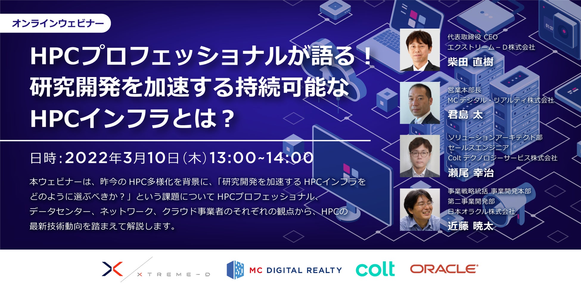 【3/10(木)13:00-14:00】HPCプロフェッショナルが語る! 研究開発を加速する持続可能なHPCインフラとは? エクストリームーD、他3社と共同ウェビナー開催