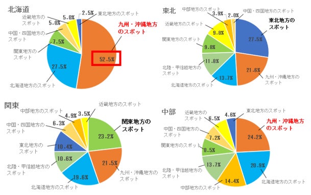 特に、北海道にお住まいの方は、半数以上の方が「九州・沖縄地方のスポット」を選択していました。