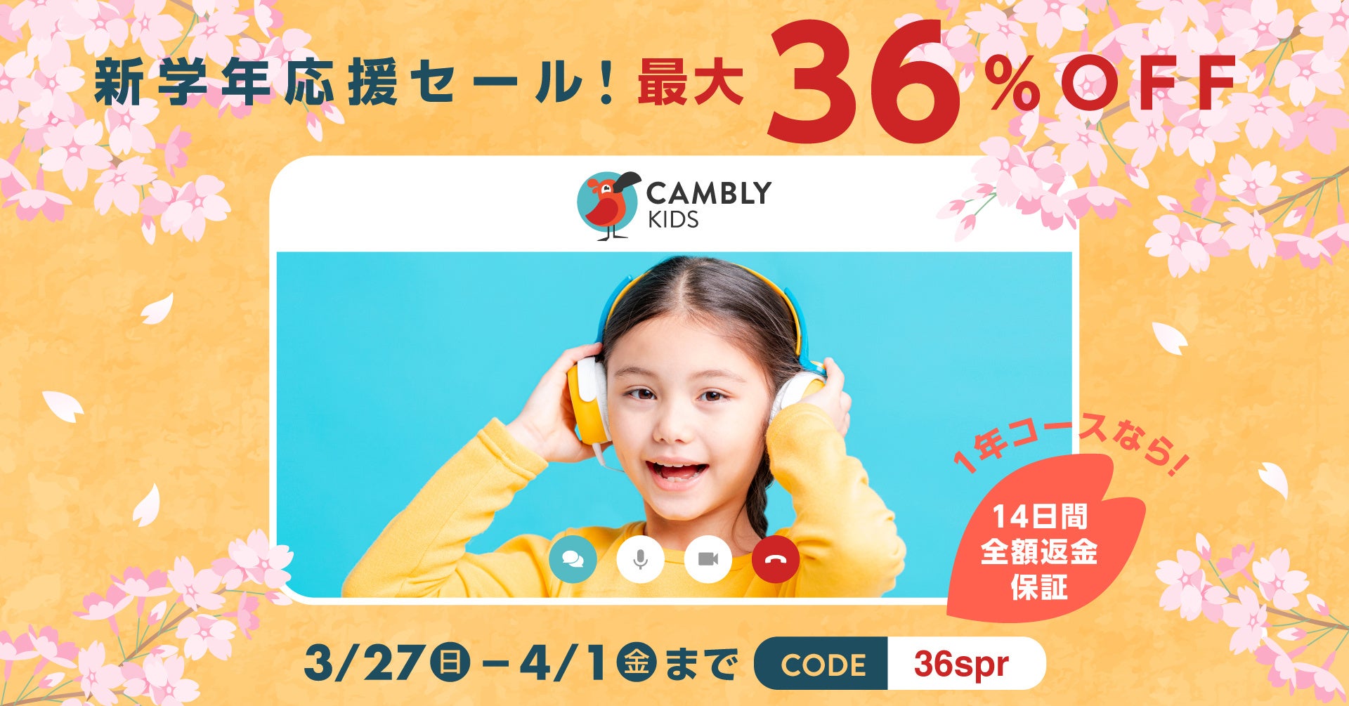 プロモコード【 36spr 】を購入時に適用するとCambly Kids全プラン15〜36%OFF!