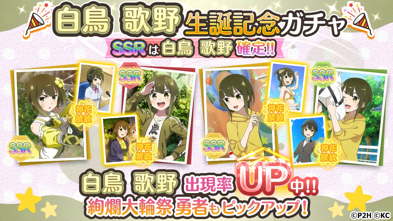 SSRは白鳥歌野が確定で登場するお誕生日当日限定のガチャ。