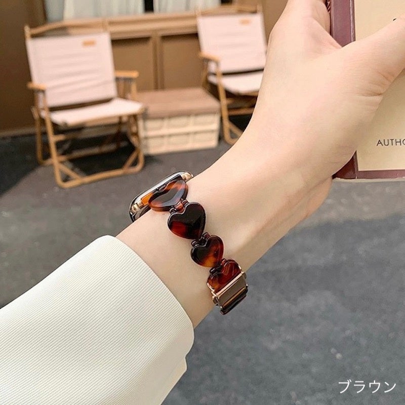 シンプルなデザインながらもハートのシルエットが取り入れられており、見た目に華やかさをプラスした可愛らしい樹脂製のアップルウォッチバンドです。