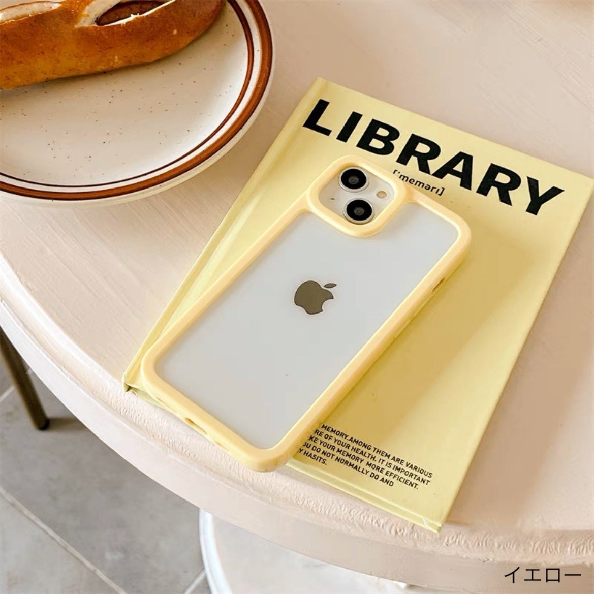 マーカーで囲ったようなカラーフレームがオシャレなシンプルケースです。直線的でありながら丸みの残るデザインが大人可愛い雰囲気をまといます。背面は本体の色を楽しめるクリア仕様です。