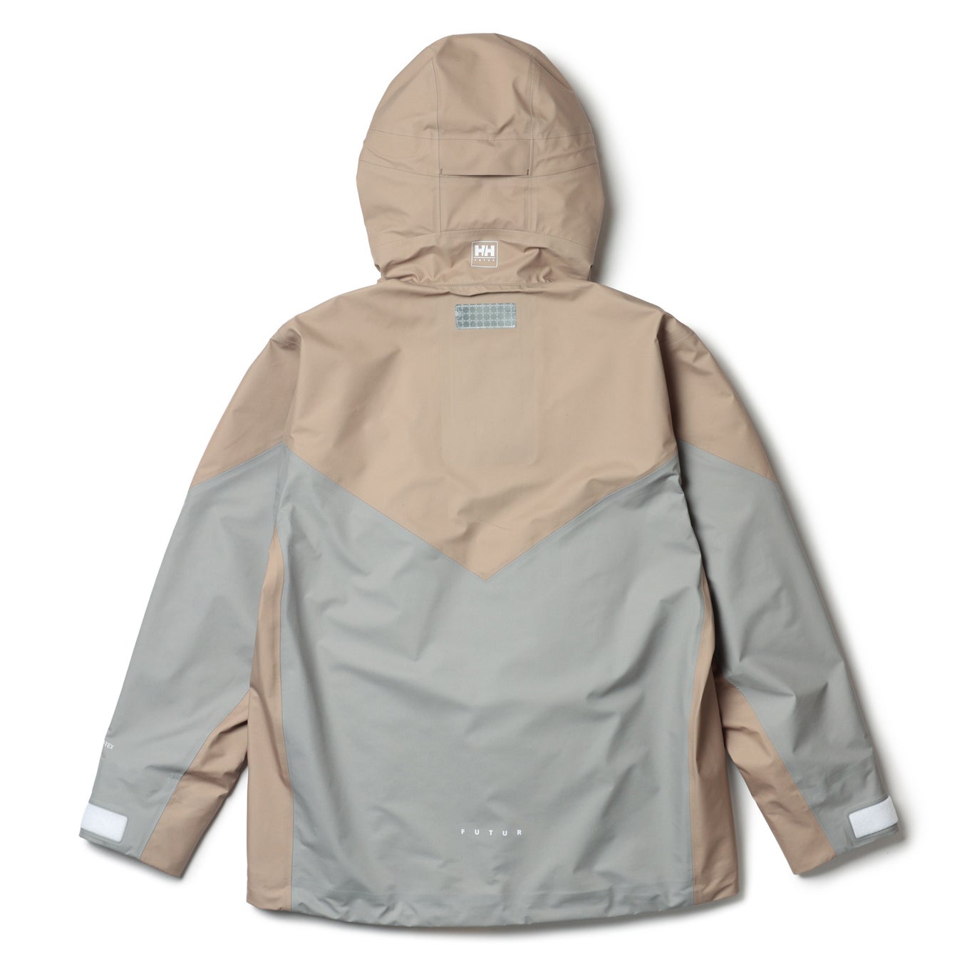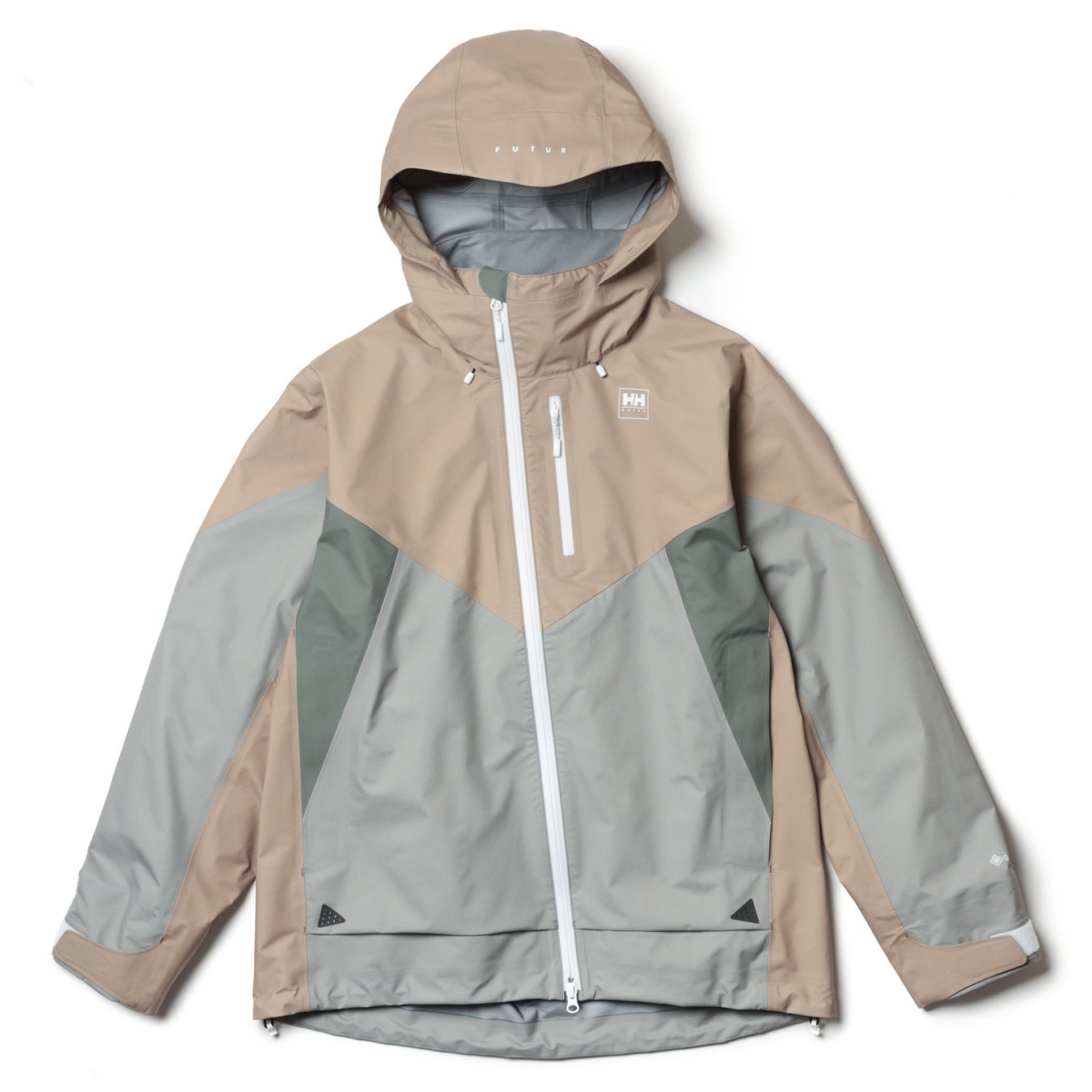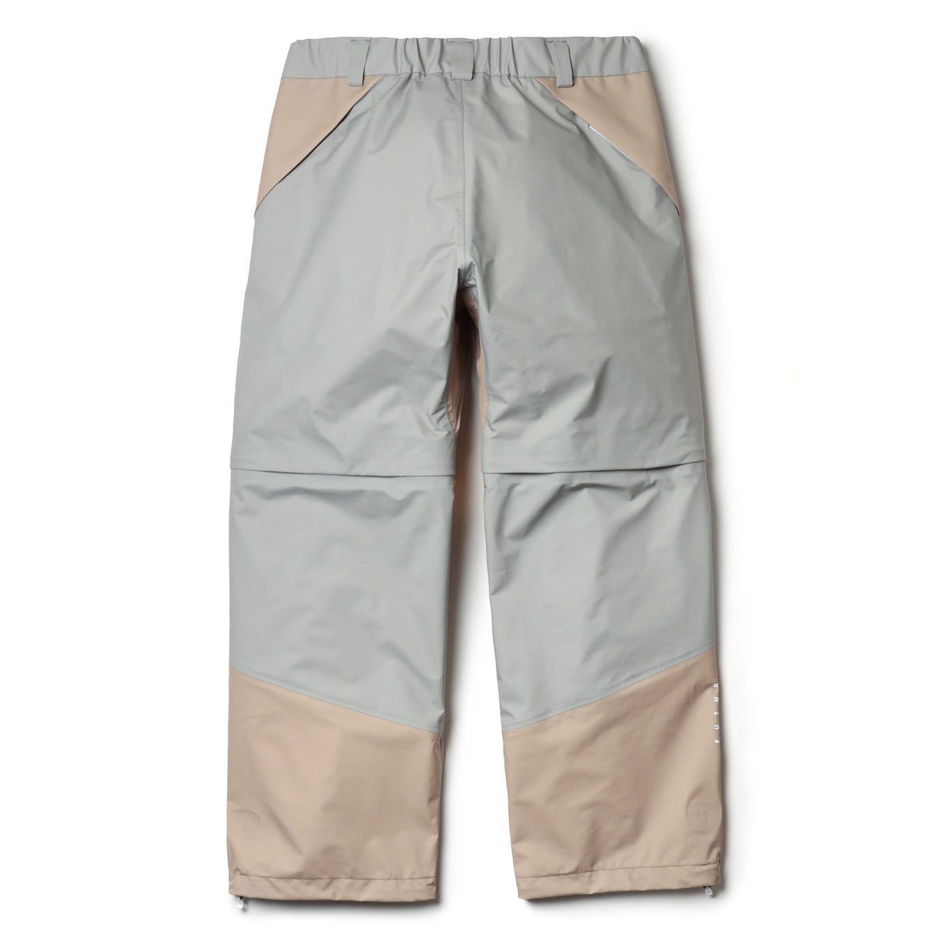 NORTH GORE-TEX JACKETとセットアップでの着用をイメージしたGORE-TEX素材の防水2WAYパンツが、FUTURのデザインとHELLY HANSENの技術が融合しました。最大の特徴は、ひざ下部分をファスナーで取り外し、ショーツにもできる2WAY仕様。ウエストはゴムシャーリング+スピンドル仕様でイージーパンツとしても着用が可能です。素材には、 GORE-TEX PRODUCTS 30D ナイロンタフタ 3L C knitを使用、優れた防水透湿性や防風性を備えながら、軽くてしなやかな穿き心地と肌側は柔らかなタッチ感になっています。ジャケット同様にFUTURの代表作であるNORTH JACKETをイメージした切り替えデザインで、バックには斜めにフラップポケットがついています。裾口にはドローコードが入っており、雨天時には裾を絞って水の浸入を軽減でき、晴れている時にはシルエットを変えてスタイリングを楽しむことができます。左前身頃には HELLY HANSENとFUTURのオリジナルロゴ、内側にはオリジナルデザインの織ネームなど、当コラボレーション限定の仕様が随所にあしらわれています。