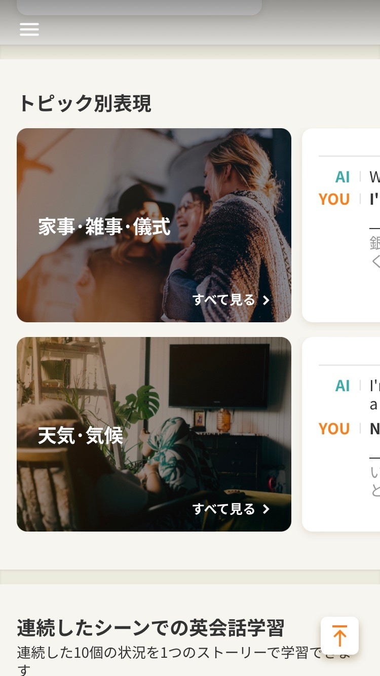 リアルな会話に近い感覚を味わえるAI対話型英会話学習アプリ~「日常英会話」「ビジネス英会話」の2テーマで、朝起きてから寝るまでの1日分の会話等を疑似体験~