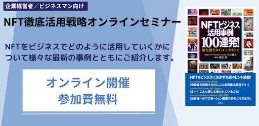 本セミナーは6月にNFT Mediaが書籍「NFTビジネス活用事例100連発!地方創生からエンタメまで」を出版した記念に、これからNFTをどのように戦略的にビジネスに活用していくか、をテーマに開催したものです。