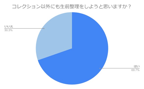 「コレクション以外にも生前整理をしようと思いますか?」の設問に「はい」と回答した方は約7割となりました。