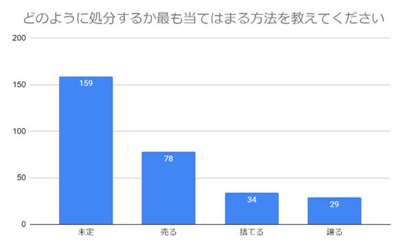 「未定」が約半数と最も多く、次いで「売る」「捨てる」が多い結果となりました。