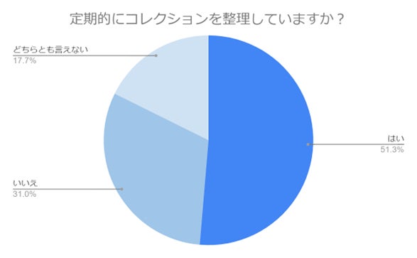 「定期的にコレクションを整理していますか?」の設問では、「はい」と回答した方が約半数でした。