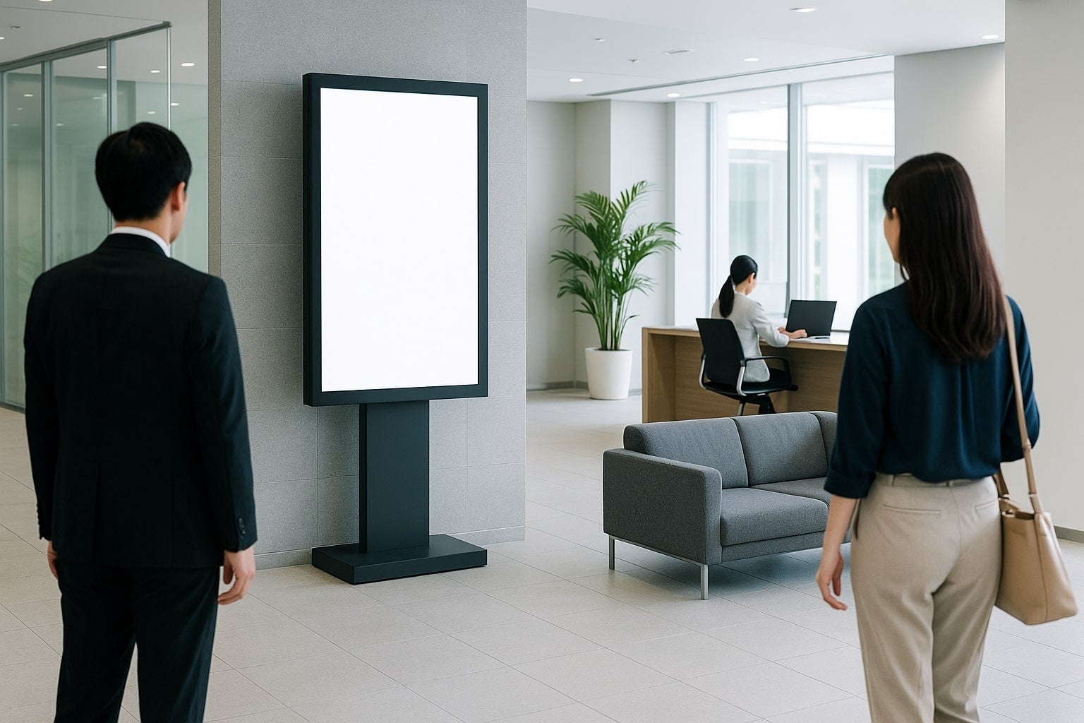 この課題に対し、弊社は、「顧客が得たい情報の分かりやすさ」と「事務所のブランド力」向上を最優先したサイネージ導入モデルを提案いたします。