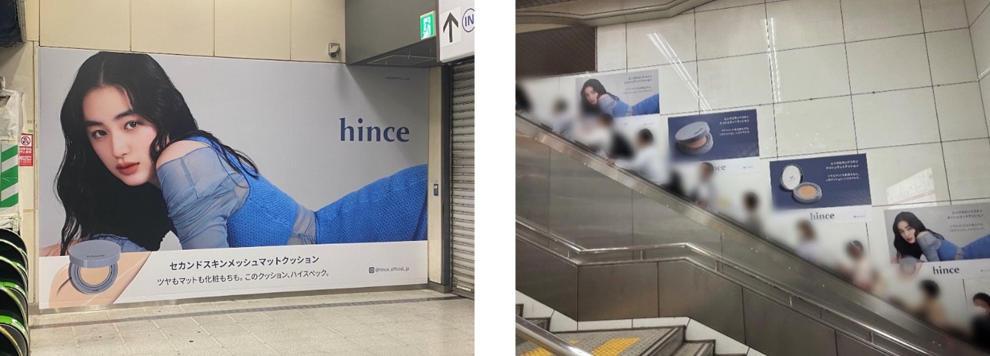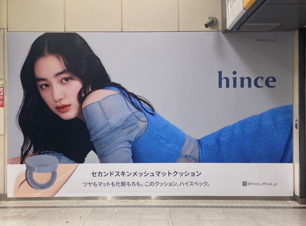 そこで、hinceはより多くの方々に魅力を知っていただき、自分だけの雰囲気をhinceと共に築き上げもらいたいと考え、セカンドスキンメッシュマットクッションの広告を渋谷、原宿、梅田に掲出しております。広告には、2023年3月にブランドアンバサダーに就任した大人気女優の八木莉可子さんが登場。彼女の飾らない洗練された美しさはhinceのアイテムをより一層魅力的に見せてくれます。