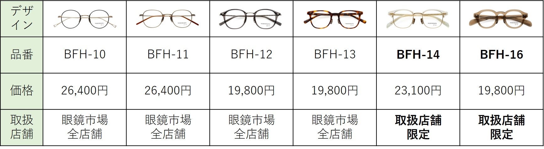 取扱店:全国の眼鏡市場店舗 ※BFH-14・BFH-16は限定店舗のみで販売いたします