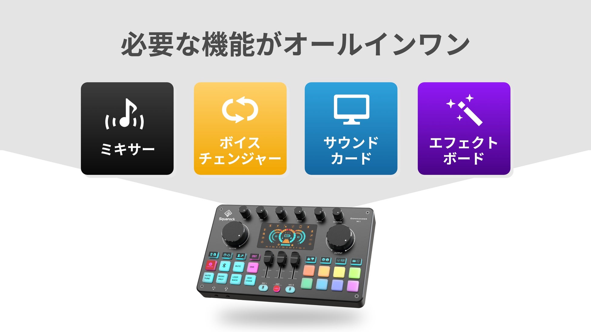Commander M1は、数々のデジタルオーディオミキシング機器を一つに集約し、シンプルな操作でライブ配信や録音を手軽に実現する機材です。高品質な音質と多機能性を備えつつ、視覚的にわかりやすく操作しやすいダッシュボードスタイルを採用しています。その直感的な操作性は、初心者からベテランまでのユーザー全てのニーズを満たします。