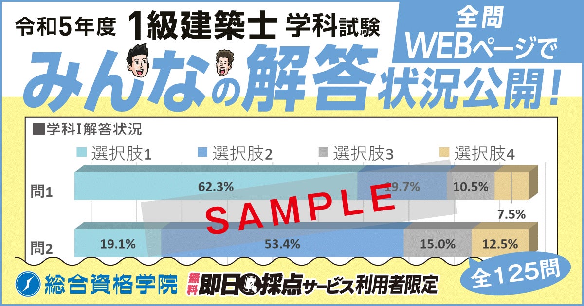 ▼【解答速報】令和5年度 1級建築士学科試験 即日採点サービス