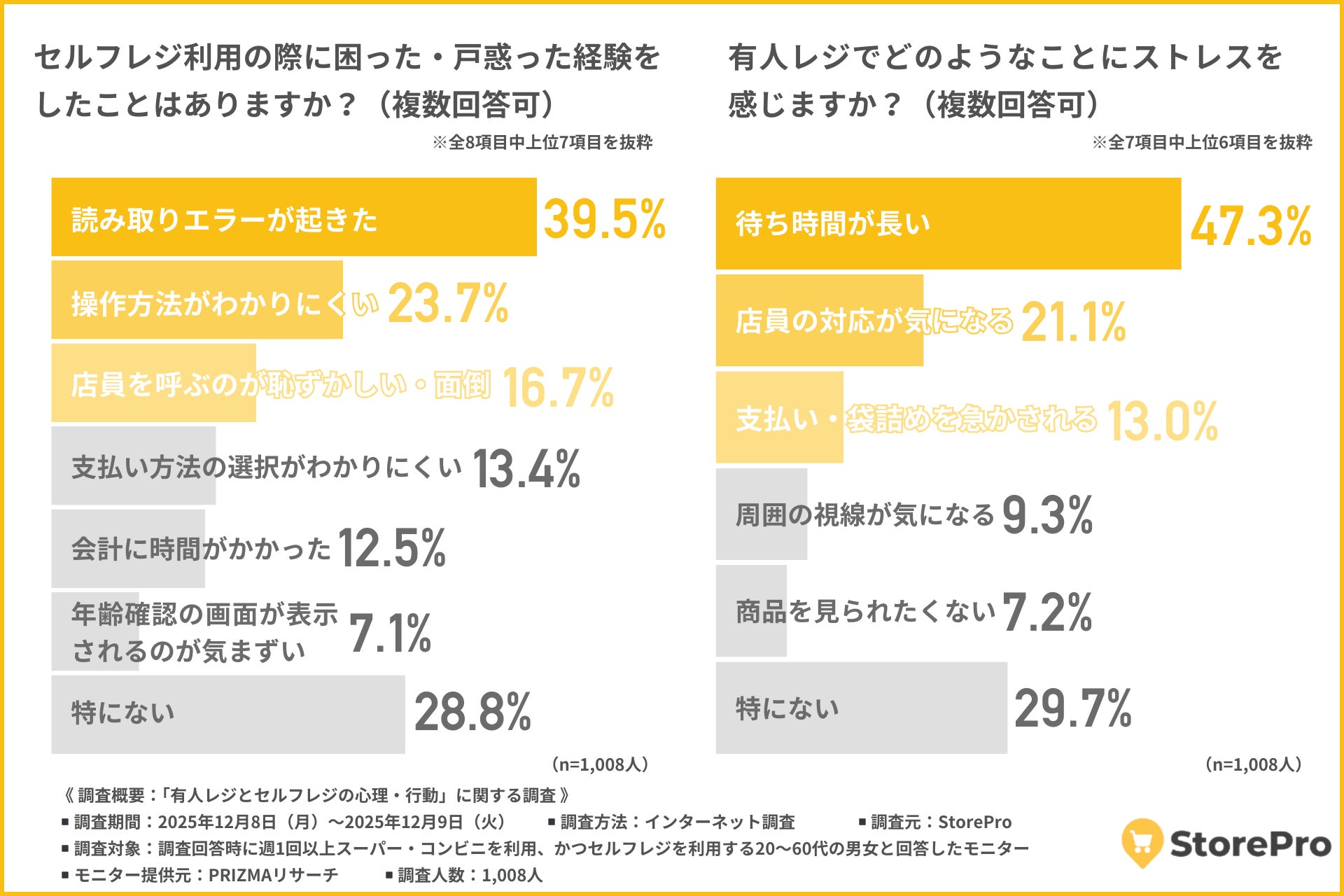セルフレジは“読み取りエラー”、有人レジは“待ち時間”!レジ別に見えるストレス構造