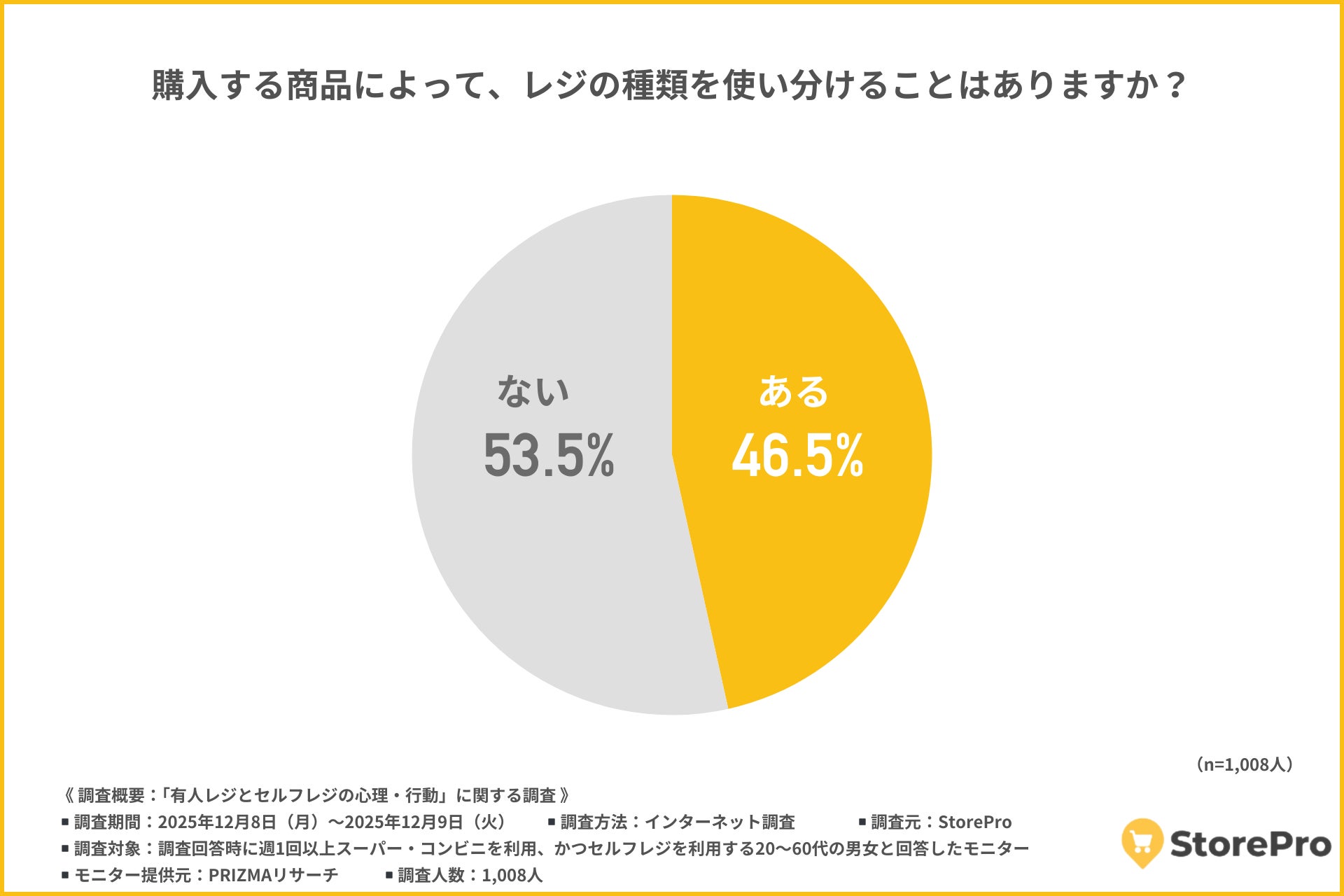 「購入する商品によってレジの種類を使い分けることはあるか」について尋ねたところ、以下のような回答になりました。