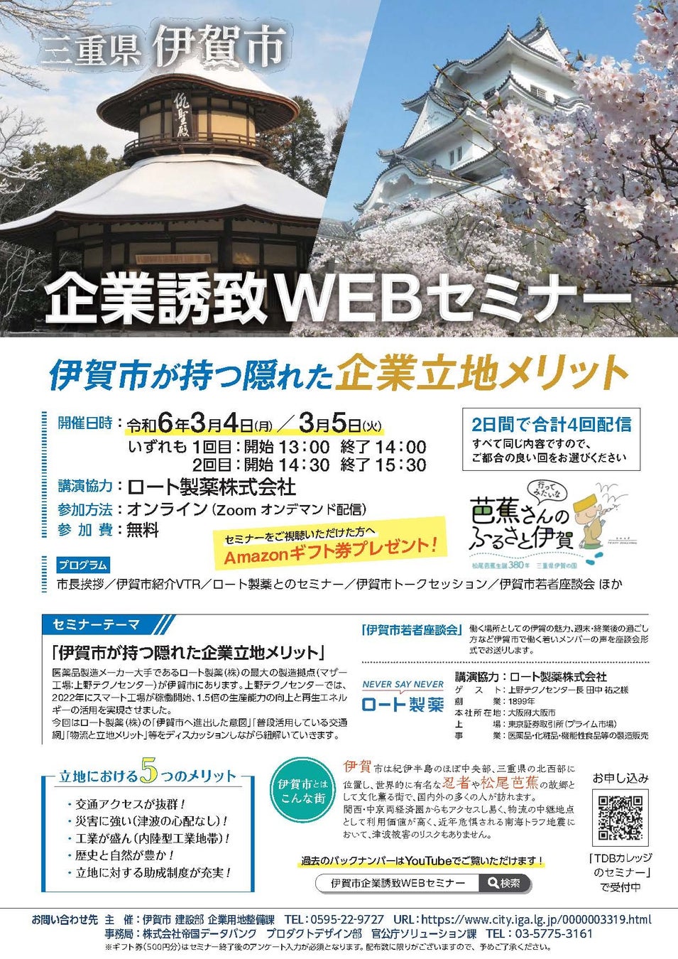 新たな進出や規模拡大を検討している企業様を対象に、「伊賀市企業誘致WEBセミナー」を開催します。