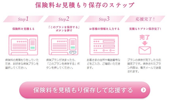 【保険料の見積もり結果保存か、ツイッター&フェイスブックによるメッセージ発信で寄付が可能】