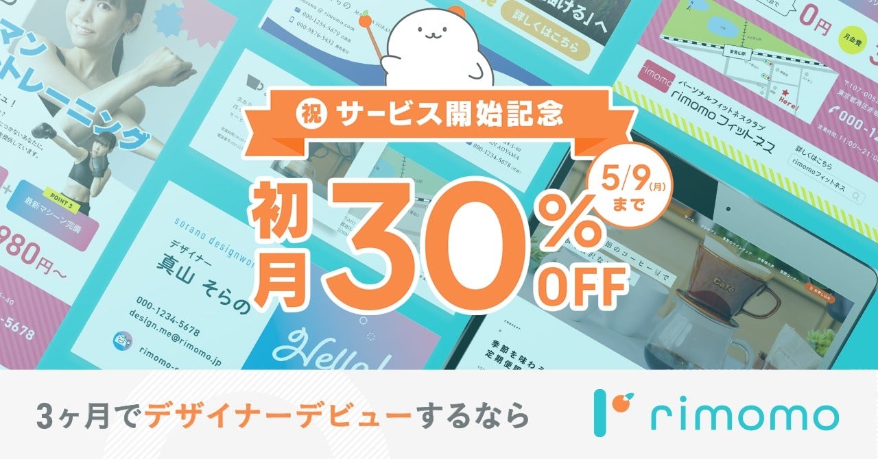 株式会社パルミー(所在地:東京都港区、代表取締役:伊藤貴広、以下パルミー)は、本日2022年4月27日(水)よりデザインのスキルが学べるオンライン学習サービス「rimomo(リモモ)」のサービスを開始しました。また、サービス開始を記念して4月27日(水)14時00分〜5月9日(月)23時59分までの期間、月額料金が初月30%OFFになるキャンペーンを開催いたします!