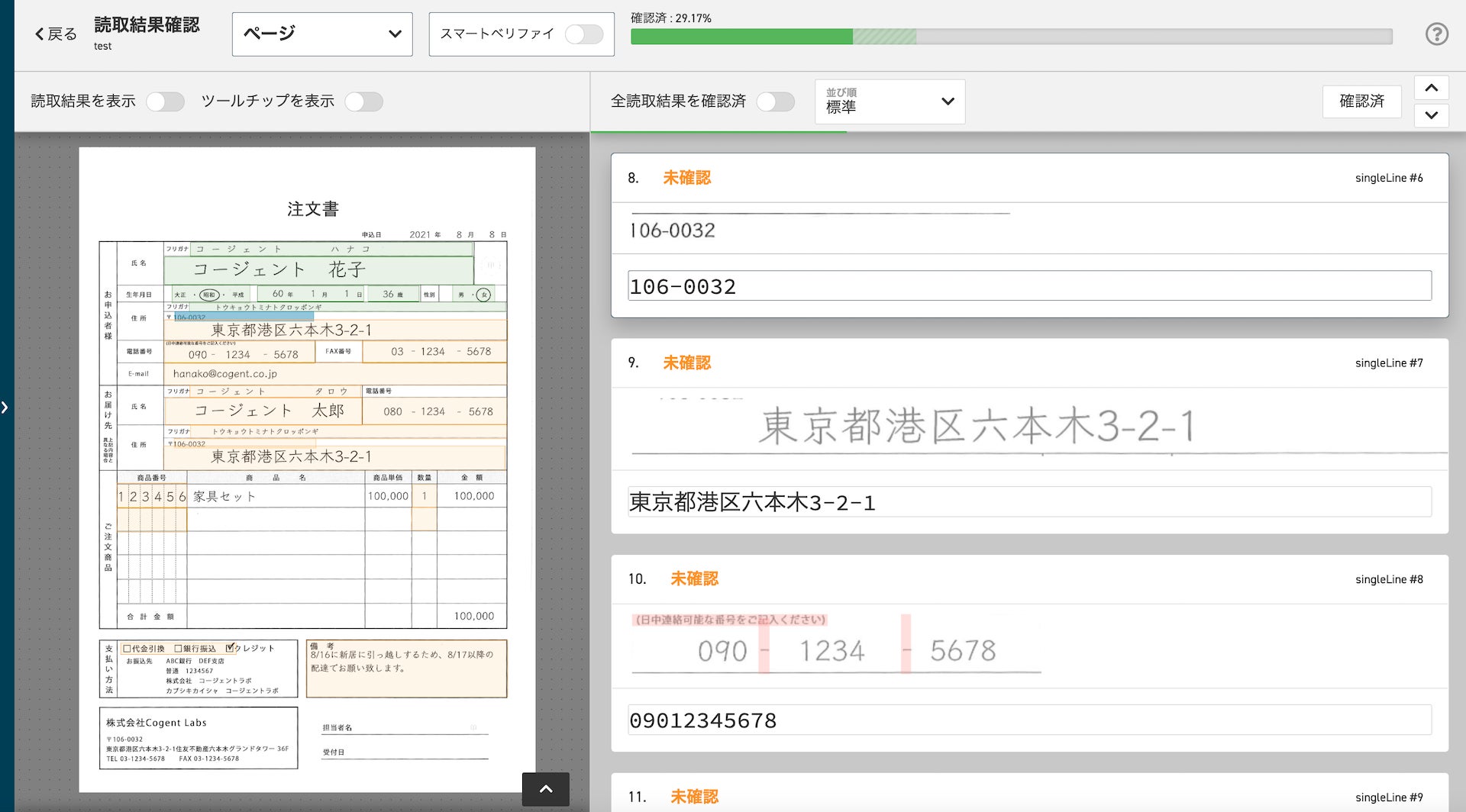 最先端AI技術の開発・提供を行う株式会社Cogent Labs(本社:東京都港区、代表取締役社長CEO:エリック・秀幸・ホワイトウェイ、以下コージェントラボ)は、様々なドキュメント処理を自動化するIDP(Intelligent Document Processing:高度文書処理)ソリューション「SmartRead(スマートリード)」において、読み取り結果の確認・修正に関する新機能「スマートベリファイ」の提供を開始します。スマートベリファイを活用することでデータ化作業時間の大幅な削減が実現します。