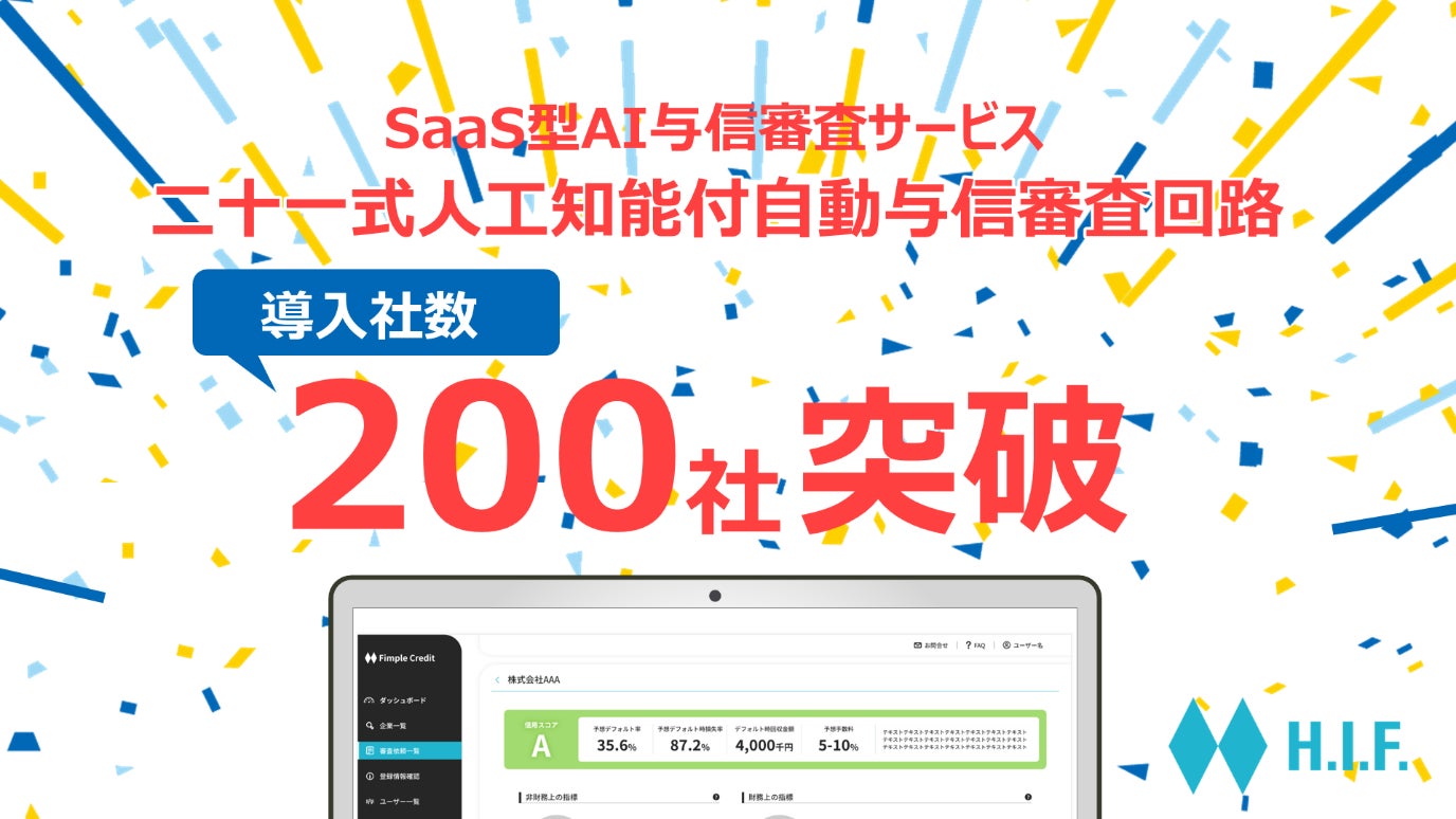SaaS型のAI定性与信審査サービス『二十一式人工知能付自動与信審査回路』導入社数200件突破