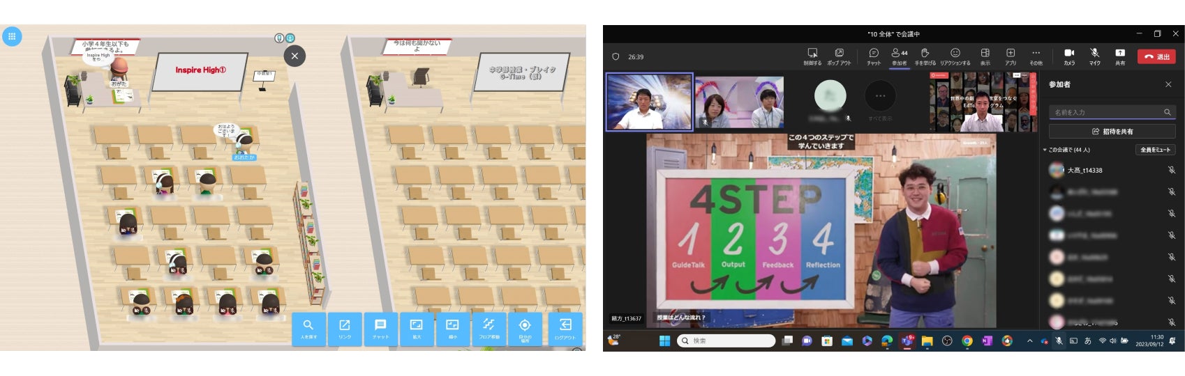 児童生徒は、メタバース空間を活用したバーチャル教室で、Inspire Highの授業に参加できます。初回授業は2023年9月12日(火)に実施し、約40名の児童生徒がInspire Highを体験しました。