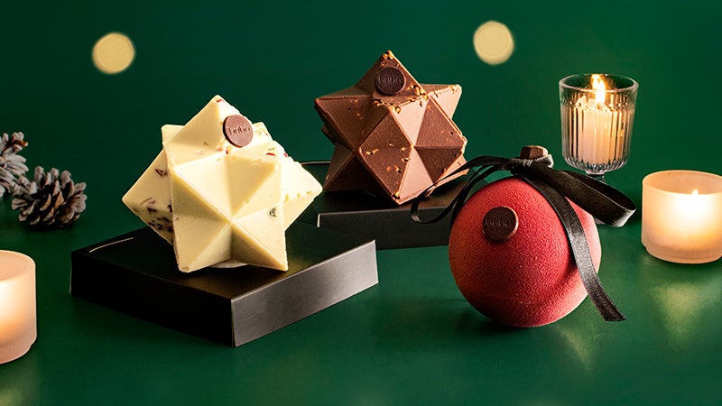 聖なる夜に煌めく星やクリスマスツリーに飾るオーナメントをモチーフにした、クリスマス限定チョコレート。チョコレートを思い切り割ると、3種のチョコボール(ダーク、ミルク、ホワイト)が溢れでてきます。驚きと遊び心が詰まった特別なチョコレートとともに、美味しく楽しいクリスマスをお過ごしください。