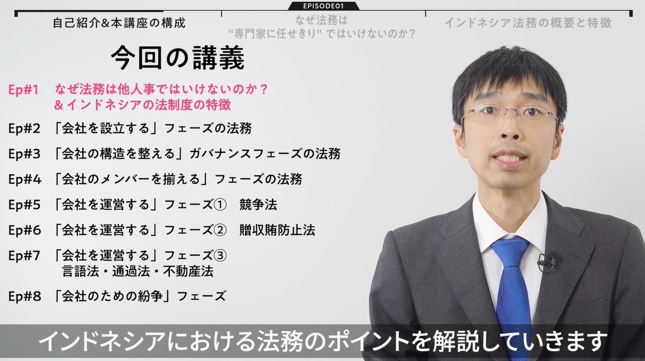 このシリーズでは、膨大にある法律の中から、海外事業において特に注意すべき法律について、該当国の専門家が国ごとに解説しています。本講座を受講することで、海外現地のコンプライアンスを統制するために必要な法律を、国ごとに把握することが可能となります。
