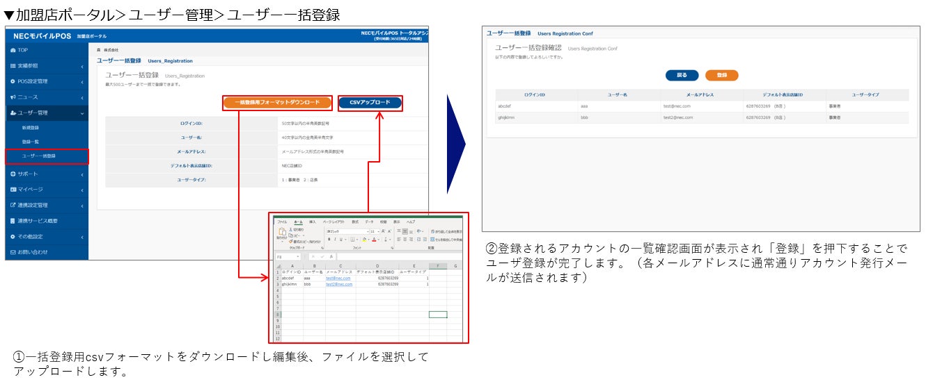 - 新規導入機能8:加盟店ポータルユーザ一括登録
