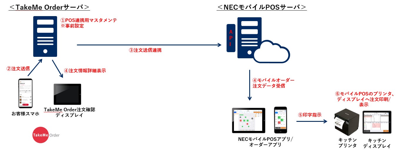 オーダー管理システム「TakeMe Order」や、レストラン向けASPサービス「BistroMate」とシステム連携
