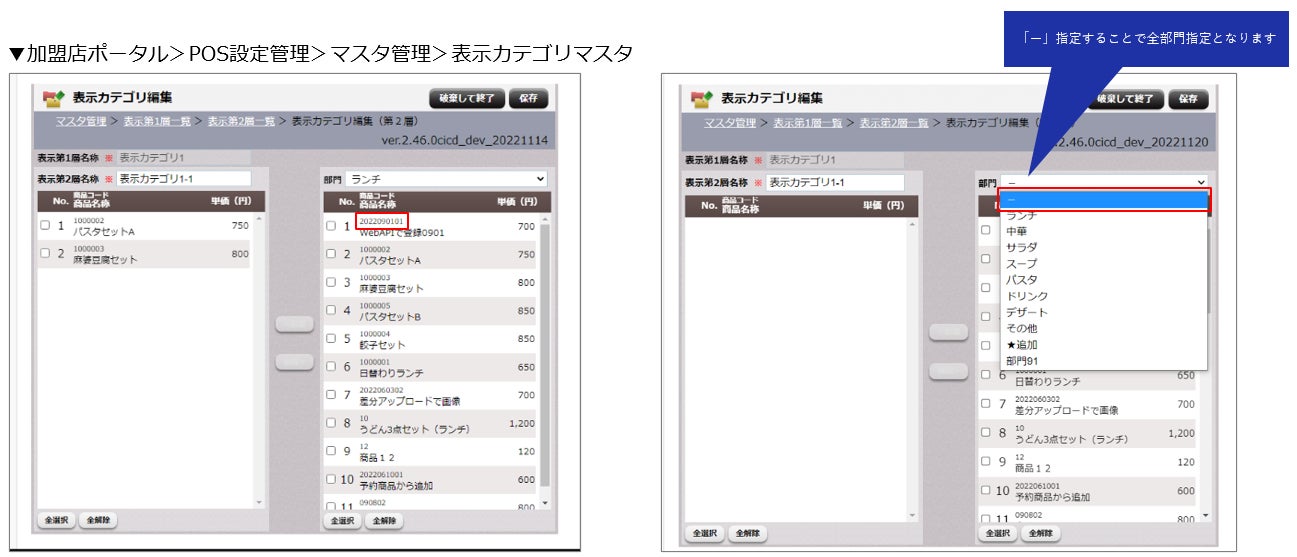 - 新規導入機能7:表示カテゴリマスタ画面検索性向上