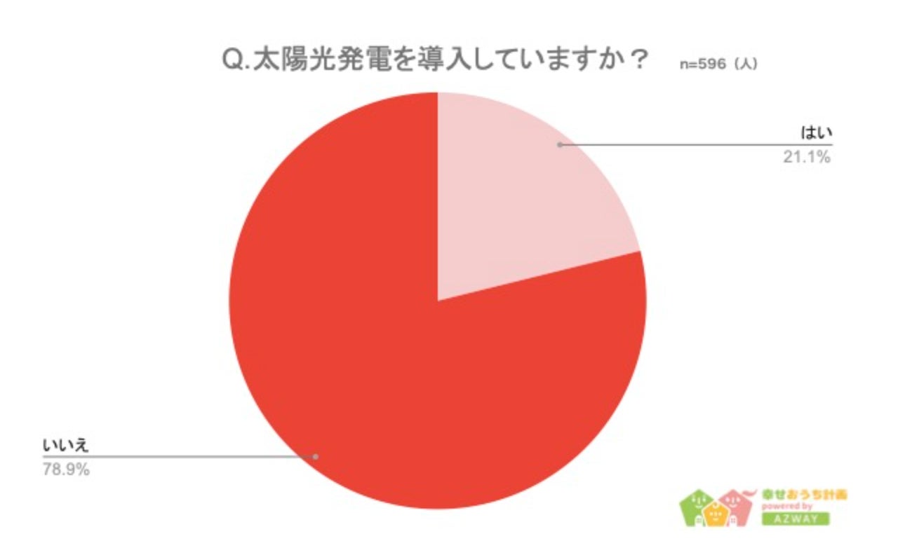 今回不動産メディア「幸せおうち計画」を運営する、株式会社AZWAY(本社:東京都豊島区、代表取締役:井口梓美)は、10代から60代以上までの596人を対象に「太陽光発電を導入しているか」についてアンケートを実施しました。