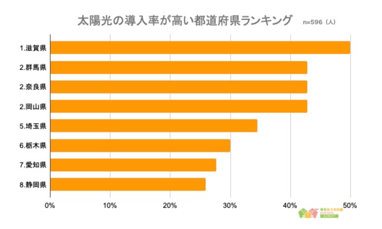 【太陽光発電の導入率が高い都道府県ランキング】回答者596人アンケート調査