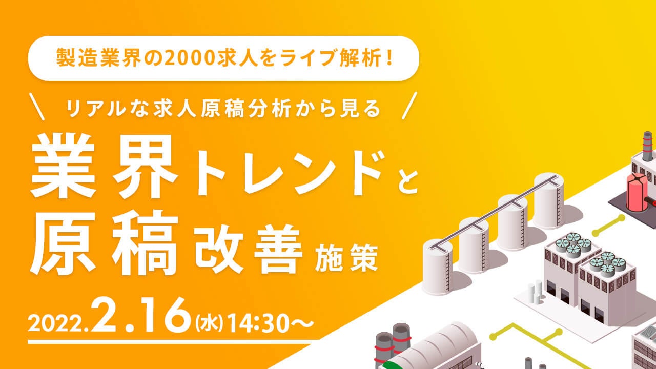 【製造業界の採用担当者向け】求人原稿改善セミナー『製造業界の2000求人をライブ解析!リアルな求人原稿分析から見る業界トレンドと原稿改善施策』★好評により毎月開催
