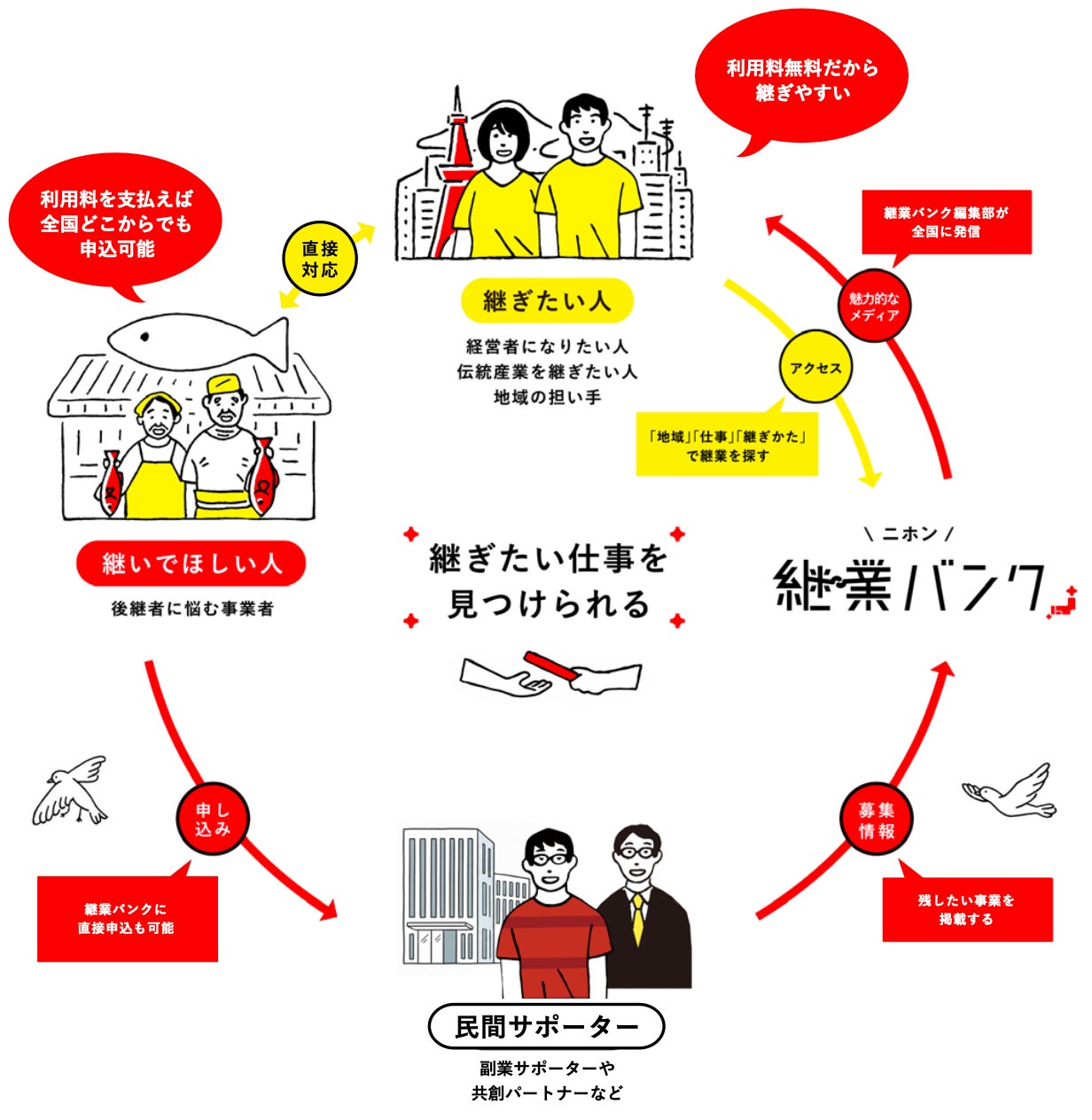 ・自治体が利用を希望しない場合は、ニホン継業バンクが事業者を直接支援します。