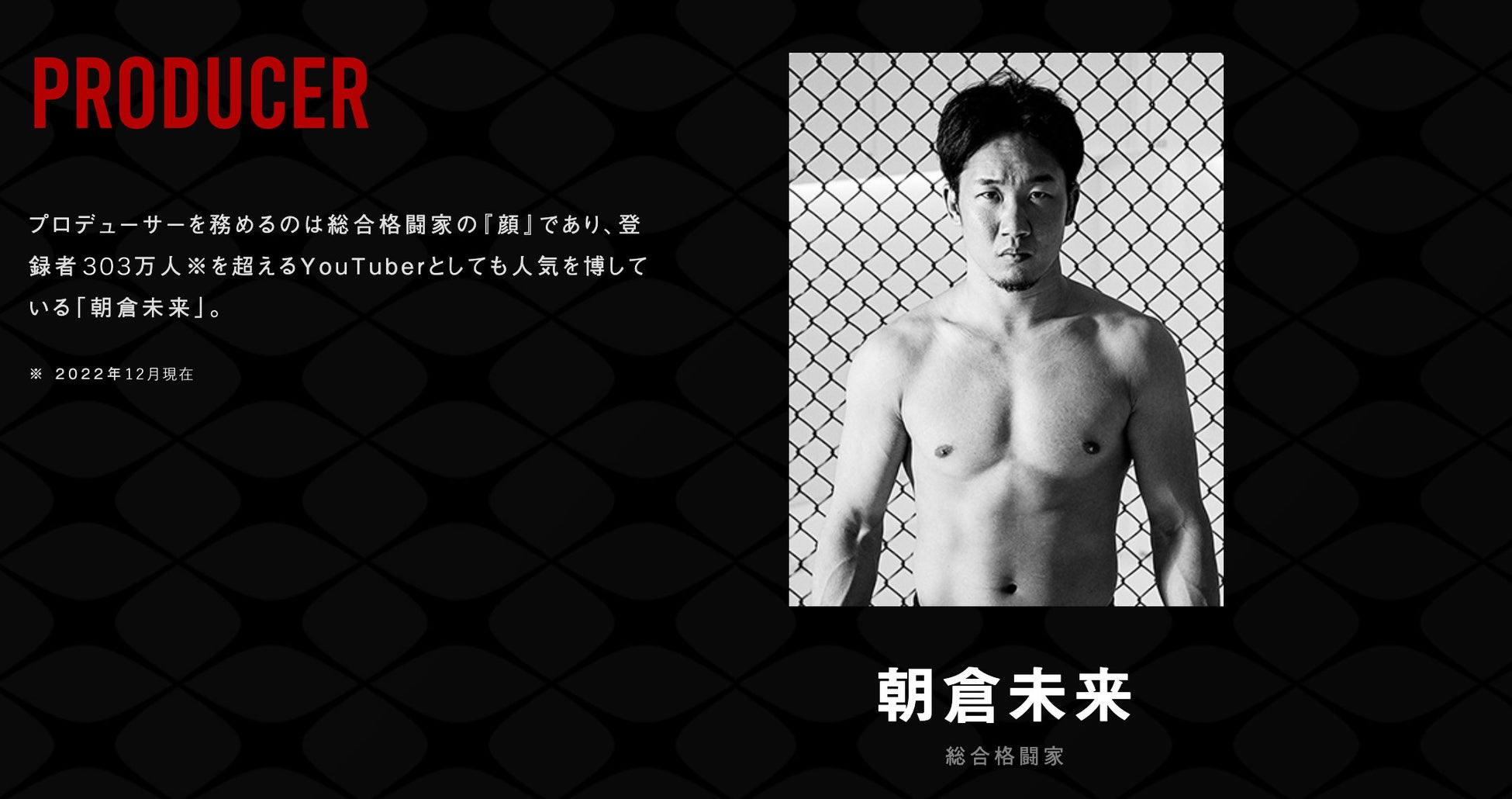 同大会はYUGOが総合プロデュースを、そして登録者数303万人超え(2022年12月現在)の人気YouTuberでもある総合格闘家の朝倉未来がプロデューサーを務め、スペシャルアドバイザーとして総合格闘家の朝倉海、総合格闘家の白川陸斗が参画しています。