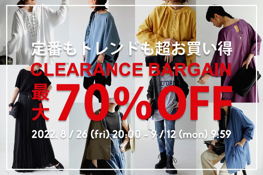 今着たい春夏ITEMがお得にGETできる大チャンスッ!定番もトレンドも即、活躍するアイテムが盛り沢山!!開催期間は2022年8/26(金)20:00 - 9/12(月)9:59まで。