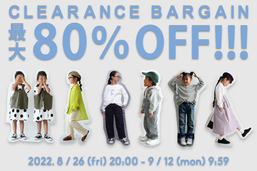 今回はキッズアイテムが最大80%OFFでお買い求めいただける、大変お得なセールとなっております。