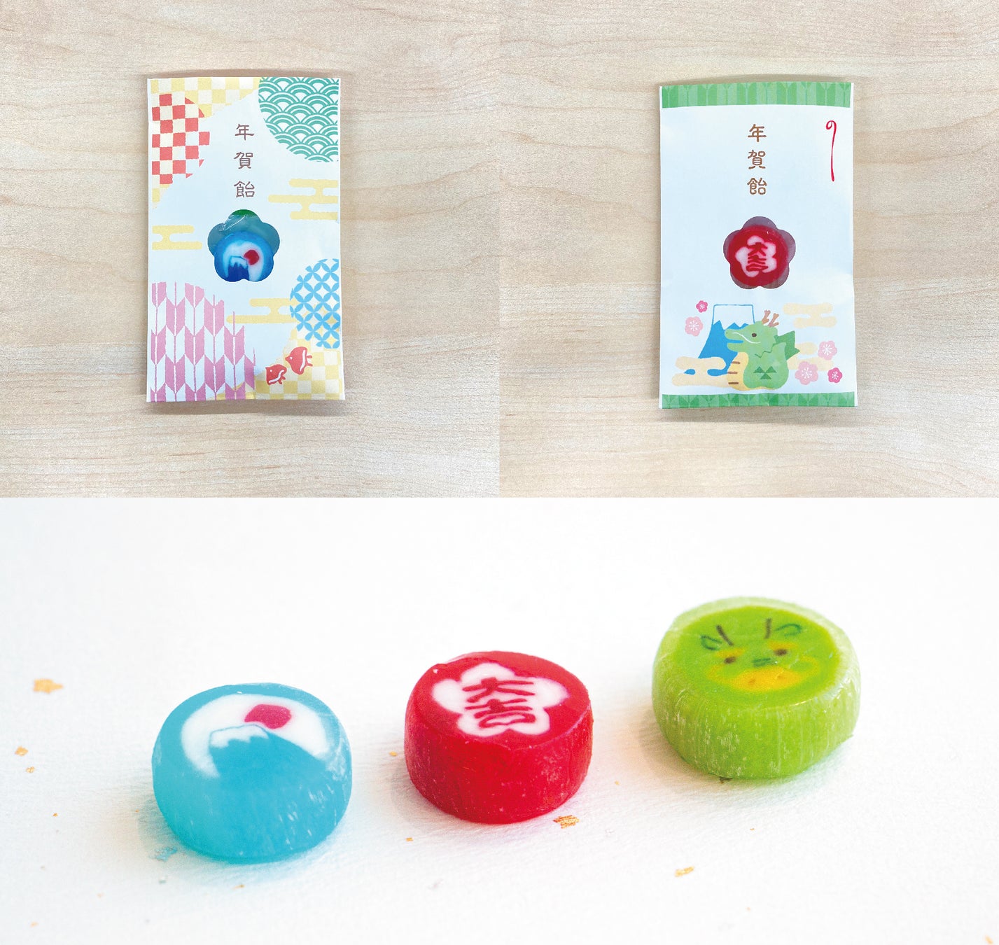 飴:大吉柄(イチゴ味)、初日の出柄(サイダー味)、干支辰(マスカット味)