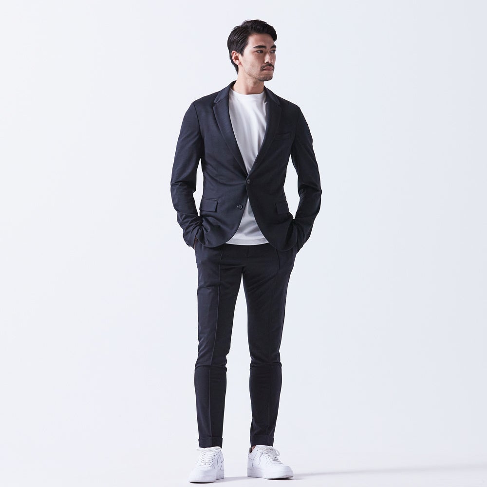 ジャケットやスラックスなどのフォーマルラインから、ジョガーパンツといったカジュアルラインまでご用意。